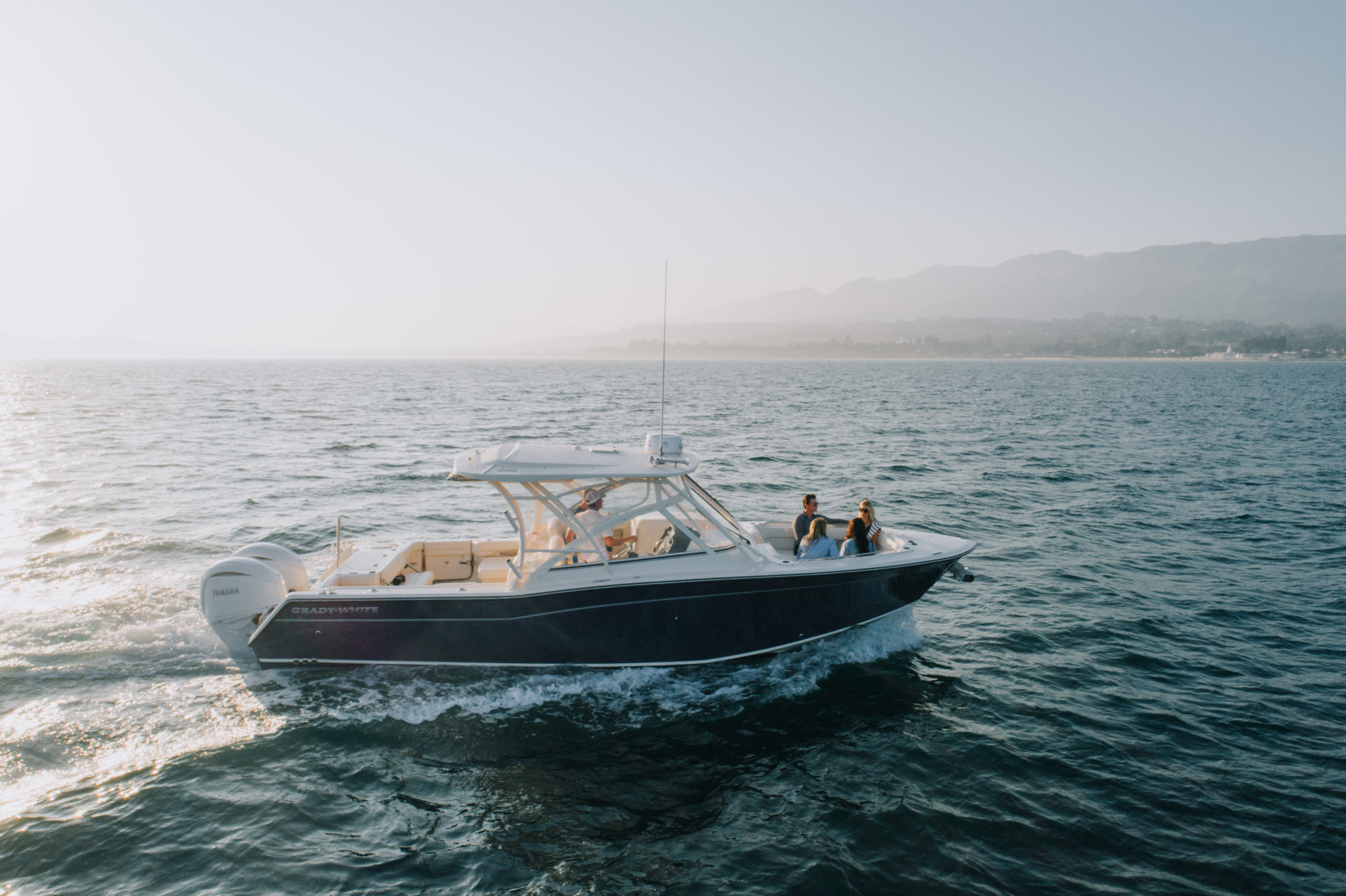 Built in 2021, Liberty was constructed for superior comfort and great entertaining options. From its expansive seating in the cockpit and bow, to its patented SeaV hull design, Liberty is the perfect choice for an enjoyable day cruising in the Santa Barbara Channel. And, with a cruising speed of over thirty knots, Liberty can get to the best sites up and down the coast or out to the Channel Islands National Park in no time – making it a great option for either half day or full day itineraries.  Designed and built by Grady-White, Liberty has the heritage, design and integrity to make a day out on the water an exceptional experience.